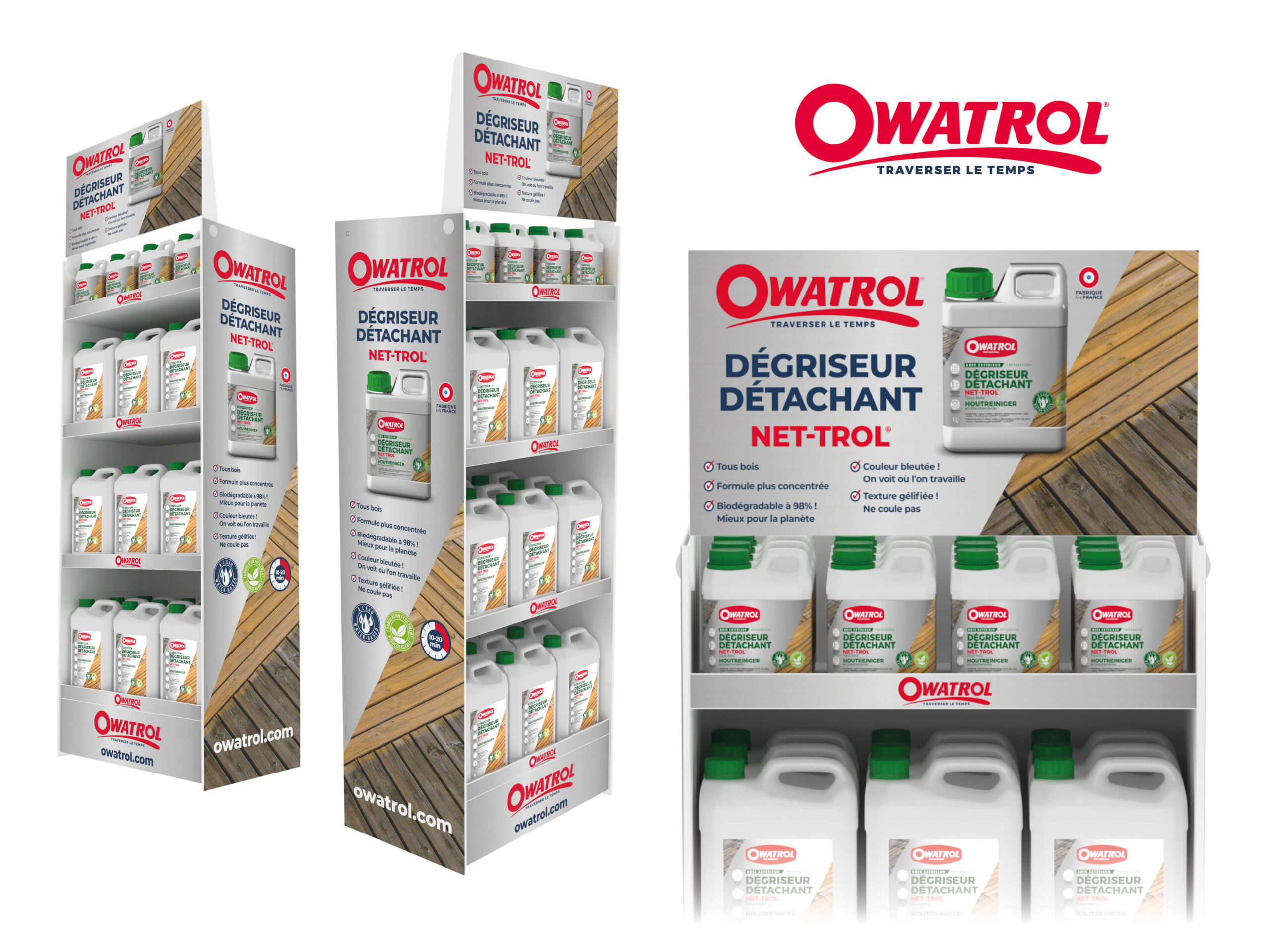 OWATROL propose des produits pour décaper, dégriser, rénover et embellir vos terrasses et bardages en bois. Ainsi que des produits antirouille ou dégrippant pour métaux.